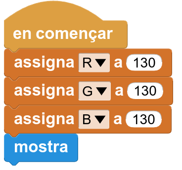 5. En començar, assigneu el valor 130 a les variables. Es tracta d’un valor intermedi entre el mínim (0) i el màxim (255):
