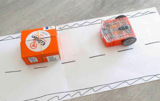 6. Escriviu en un full el codi per tal que el robot realitzi l’avançament. Un cop acordat aquest codi entre tots els membres del grup, afegiu-lo al programa i executeu-lo.