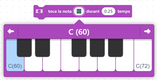 Veureu que quan feu clic sobre la nota, us apareixerà un teclat de piano: