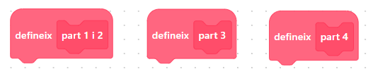 Feu el mateix per crear un bloc que es digui “part 3” i un altre que es digui “part 4”. Veure que a la zona de treball us apareixen tres blocs nous “Defineix part 1 i 2”, “Defineix part 3” i “Defineix part 4”:
