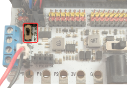 Important: assegureu-vos que el selector de voltatge de la placa micro:shield estigui posicionat a 5 V: