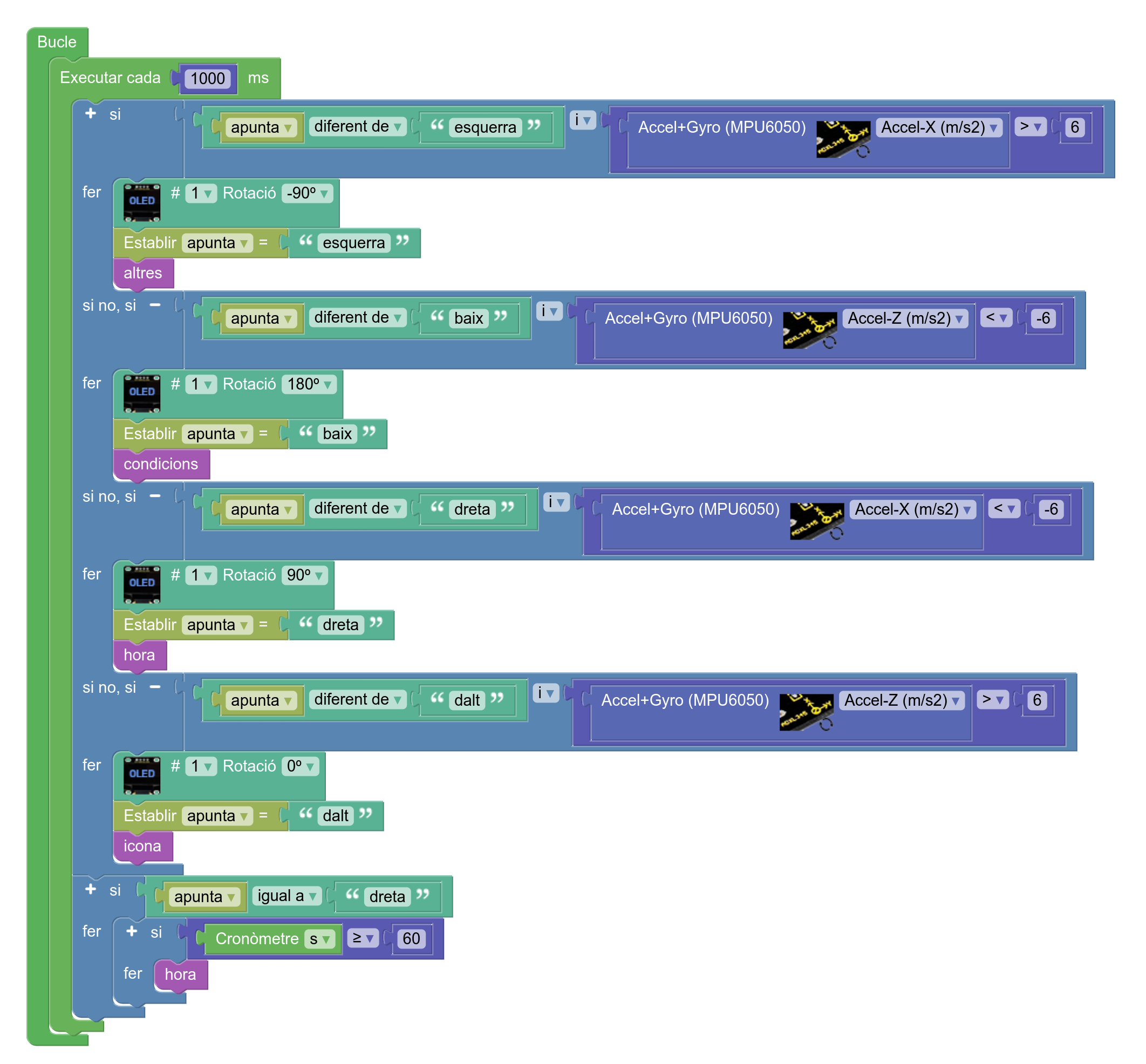 13. Ompliu el bucle principal, que mostra informació a la pantalla en funció de l’orientació del cub: