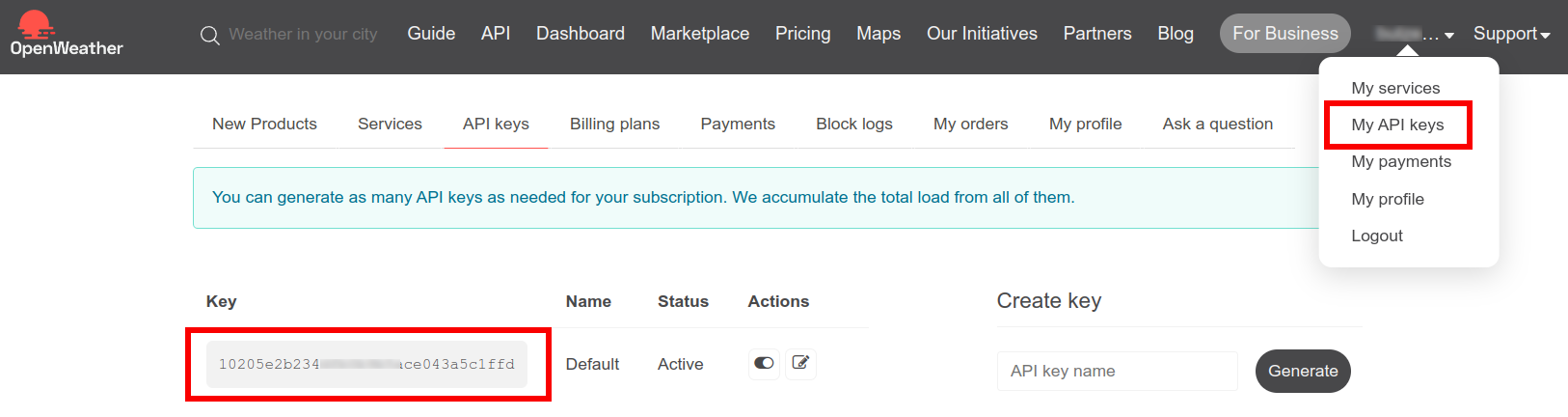 3. Feu clic en el desplegable del vostre nom d’usuari i trieu “My API keys”. Anoteu la clau API, la necessitareu en el pas següent.