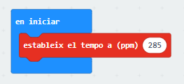10. Podeu provar de variar el tempo de la melodia, fent servir el bloc “estableix el tempo a” dins de l’apartat “música” dins del bloc “en iniciar”: