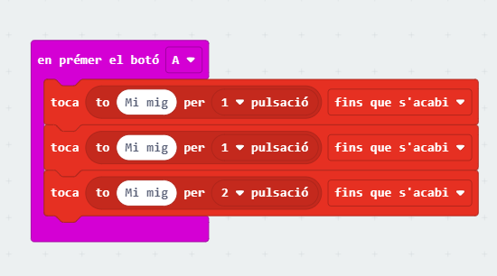1. Partitures senzilles: l’activitat es pot per fer en parelles. Els alumnes programen tota la cançó en un mateix projecte de micro:bit. La placa reprodueix la cançó del principi al final.