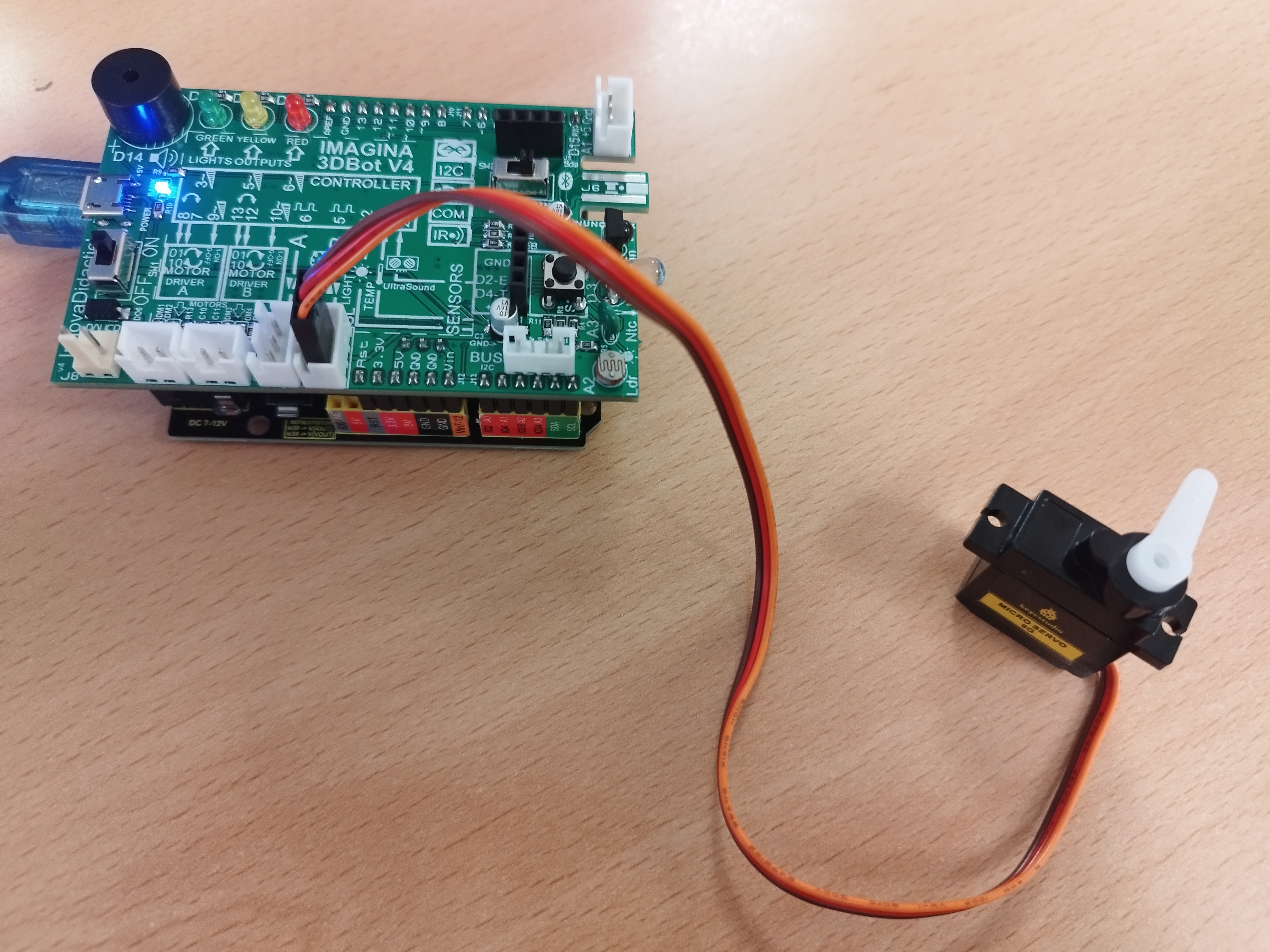 6. Si la comanda enviada per un usuari és la correcta i el sistema no està bloquejat, s’acciona el servomotor (micro servo 9G) per obrir/tancar la porta i s’activa el led verd durant 10 segons: