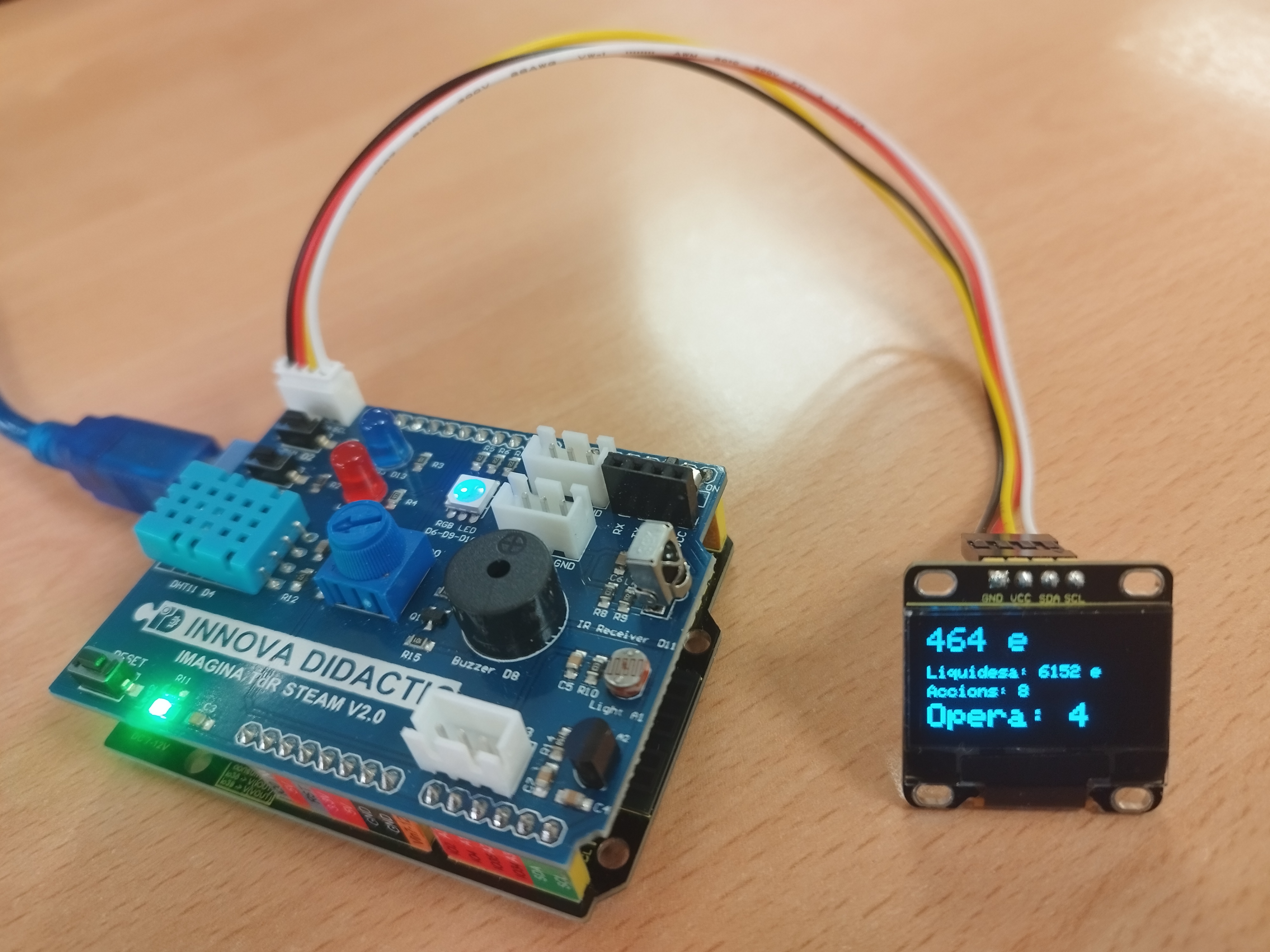 5. Connecteu amb un cable I2C la pantalla OLED i utilitzeu el programa creat: