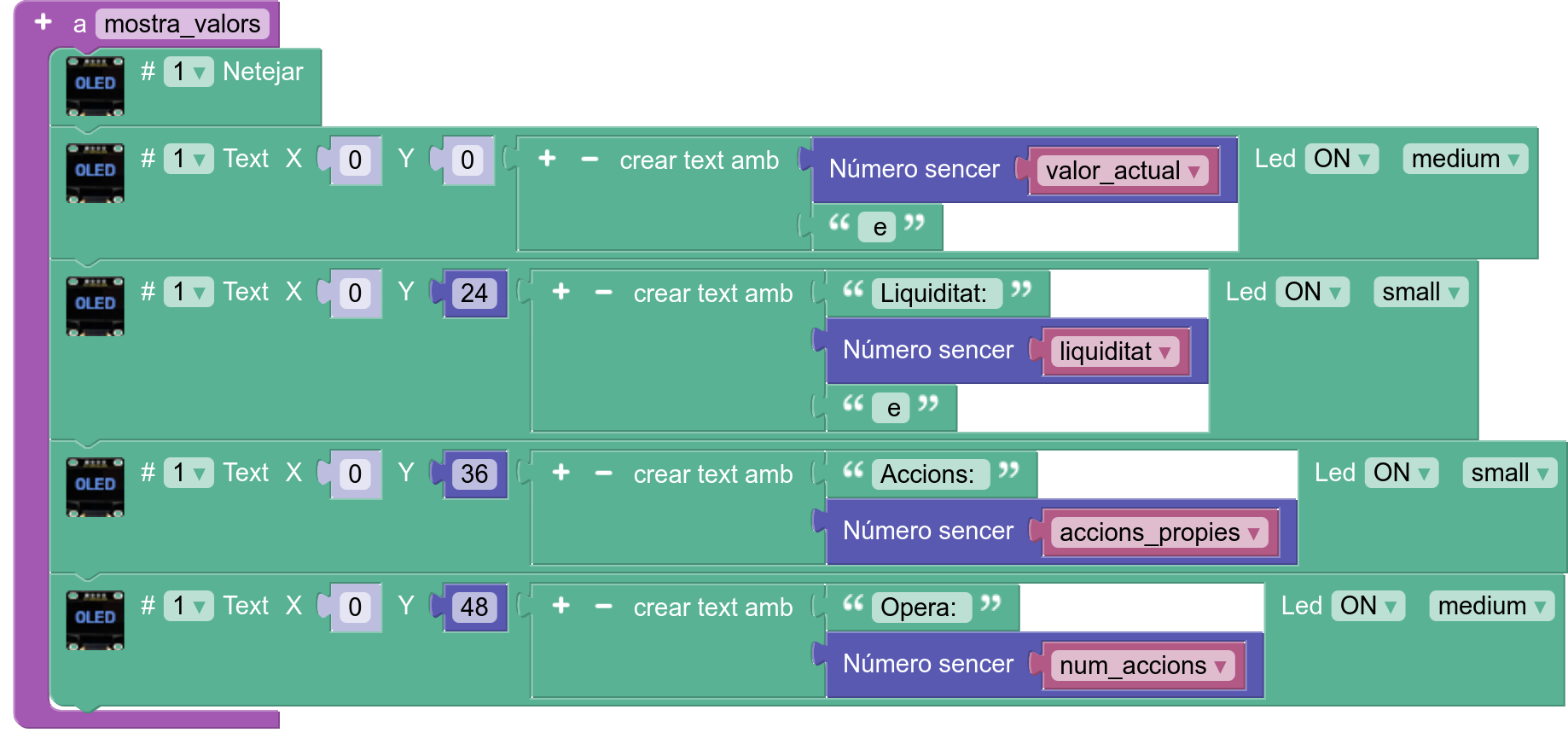 3. Programeu el procediment per mostrar el valor de les variables a la pantalla OLED: