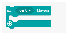 4. A continuació, programarem el bloc condicional perquè, en funció del nombre mostri una icona diferent. Per fer aquesta programació fem servir el bloc condicional “Si” i els blocs de comparació “igual que”. És important que per anar afegint blocs de condicions a aquesta estructura, premeu el símbol “+” que surt a l’extrem inferior esquerre del bloc.