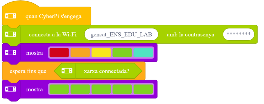 2. En l’encesa, connecteu la CyberPi a la xarxa wifi de l’escola: