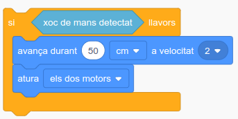 2. Enregistreu què heu après: programeu el robot. El moviment del robot es produirà cada cop que es piqui de mans, per exemple: