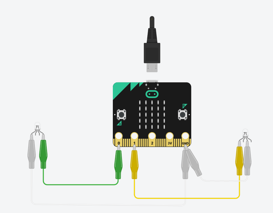 Com es veu a la imatge, el punt inicial està connectat al pin 0 de la placa micro:bit i a terra (GND). El punt final està connectat al pin 1 i a terra.