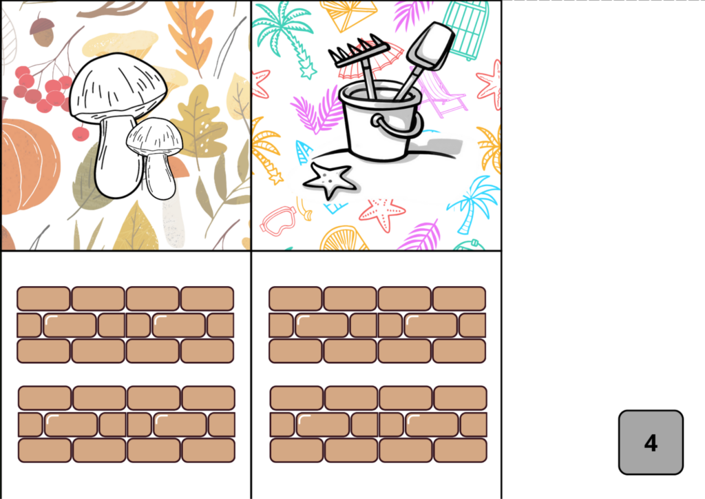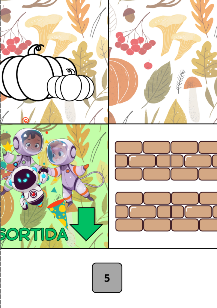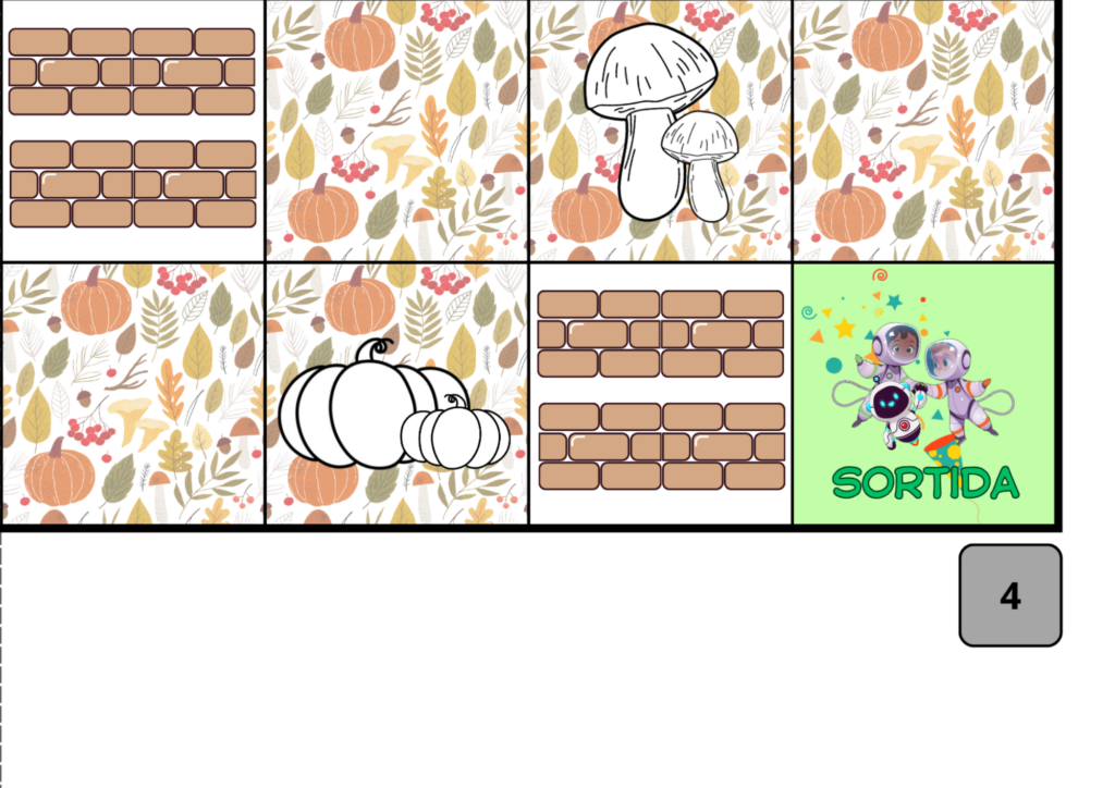 El quart tram és el de la tardor. En aquesta estació plou molt! Necessitareu paraigües i botes d’aigua! Equipeu bé el vostre robot i arribeu al final del laberint!