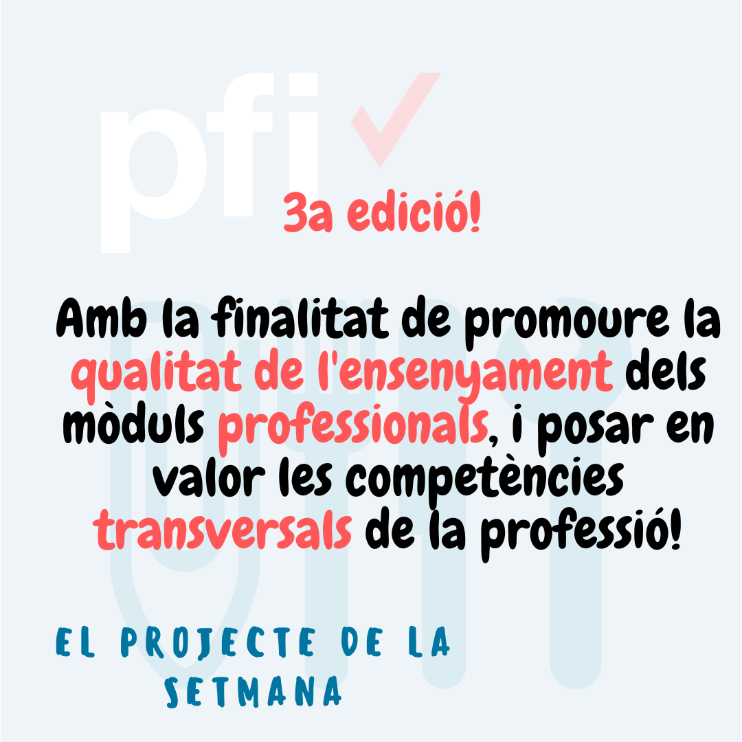 13/12/23Estan obertes les inscripcions per a la formació específica per a professorat PFI per al segon i tercer trimestre del curs 2023-2024. Les formacions planificades són: