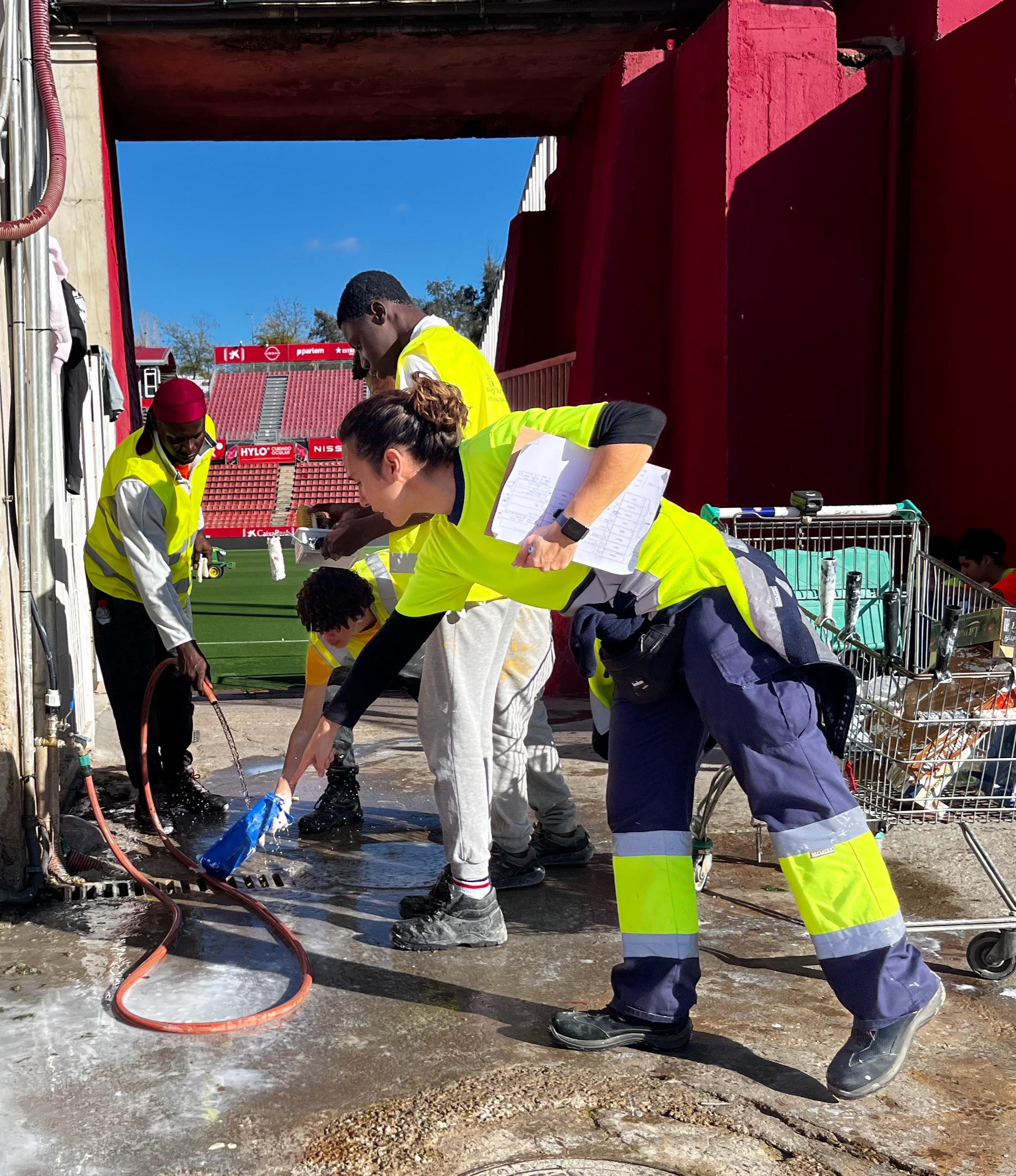 Així doncs, l’alumnat va realitzar la reparació i pintura de gran part dels esglaons de les grades del camp amb molta implicació i motivació. L’alumnat va aconseguir complir l’objectiu establert i al final de la jornada va ser obsequiat amb roba esportiva del Girona Futbol Club.