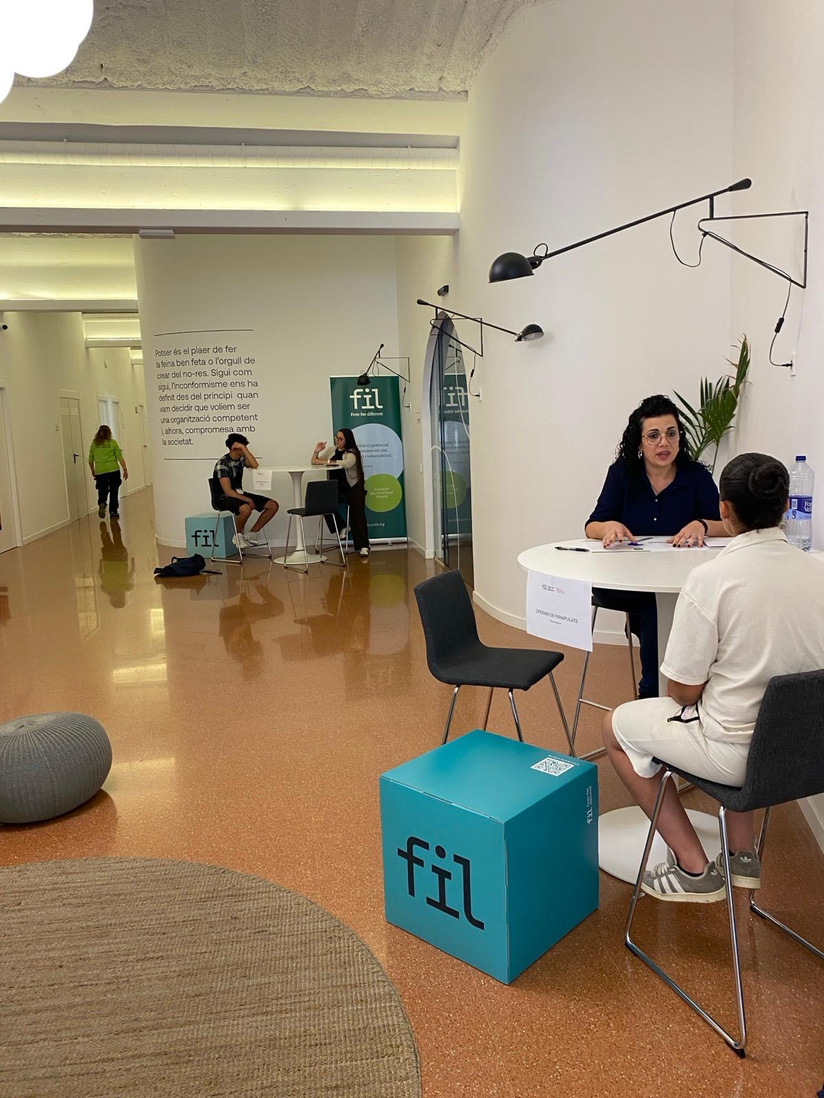 La part d’entrevistes ha reproduït un procés de selecció real amb tres candidatures vinculades a serveis de la Fundació FIL: atenció al públic, jardineria i industrial. Cada alumne/a podia inscriure’s a un màxim de dues candidatures i havia de portar el seu currículum preparat per al dia de l’activitat.