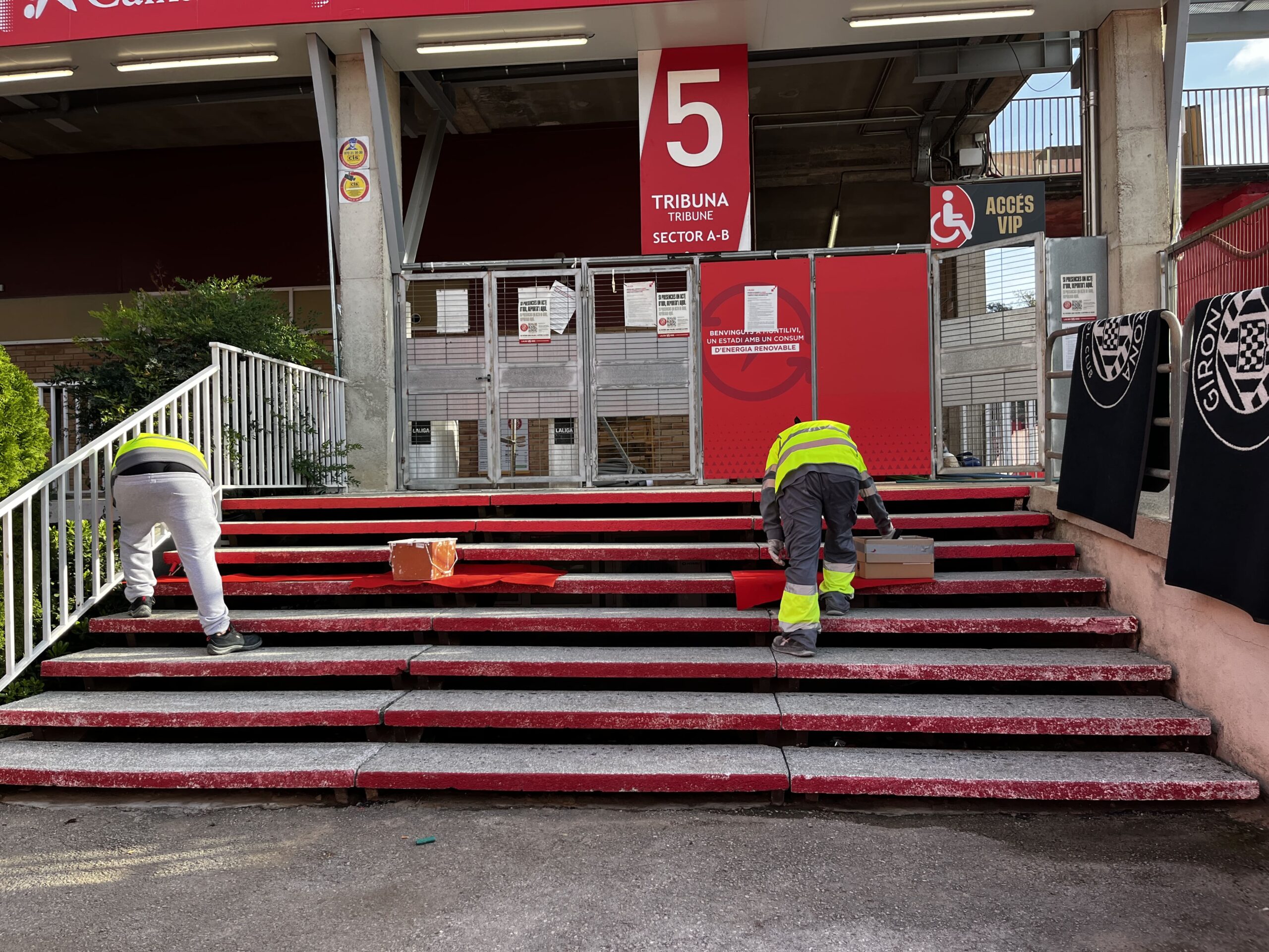 Així doncs, l’alumnat va realitzar les tasques de pintura dels esglaons amb molta implicació i motivació. L’alumnat va aconseguir complir l’objectiu establert i al final de la jornada va ser obsequiat amb roba esportiva del Girona Futbol Club.