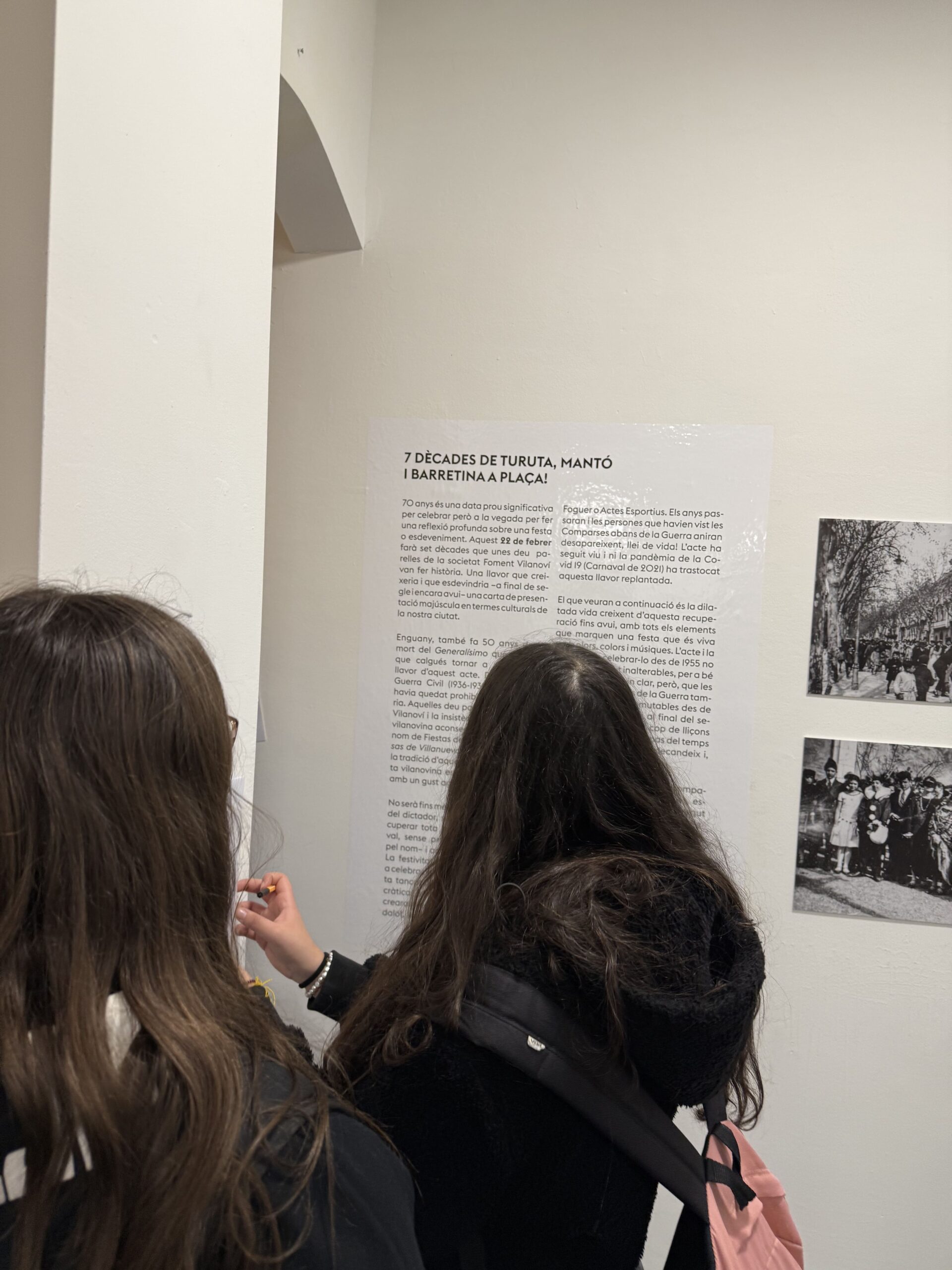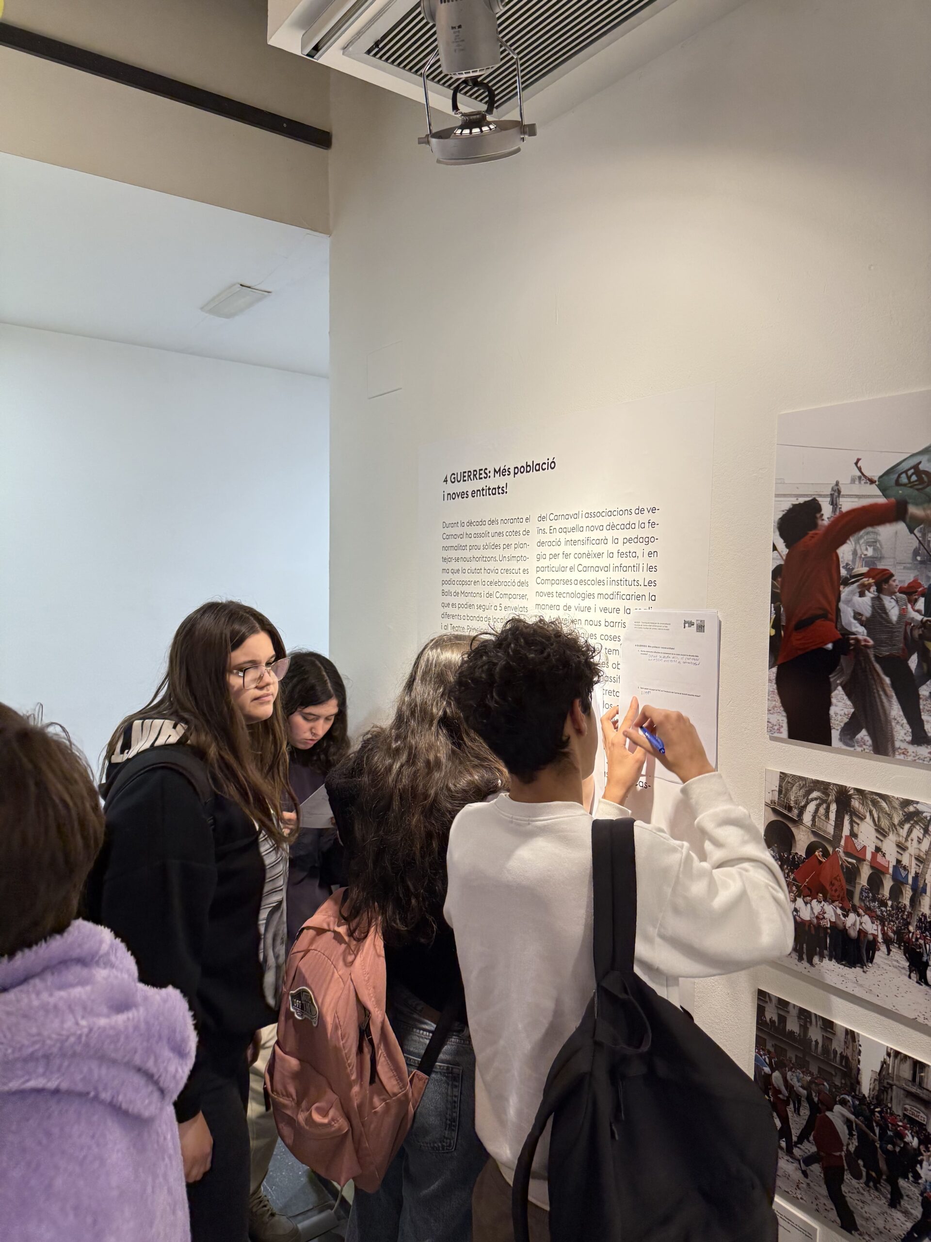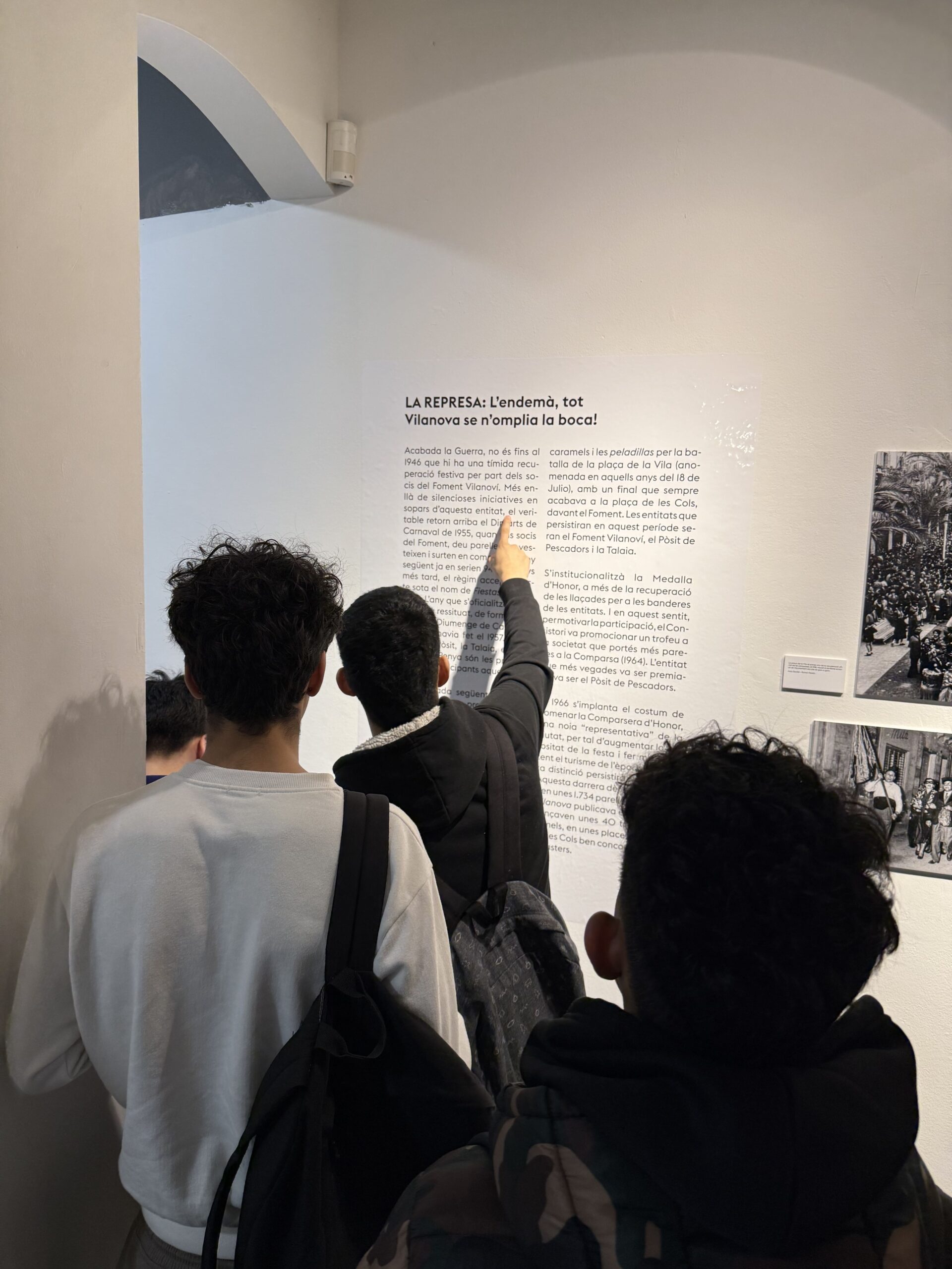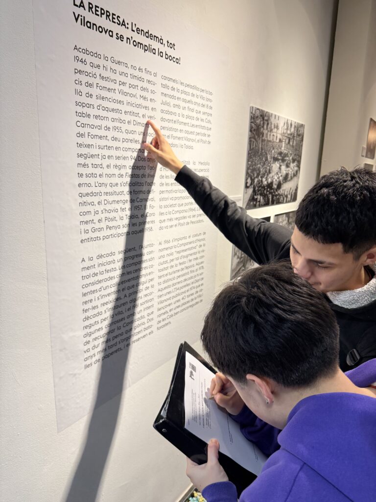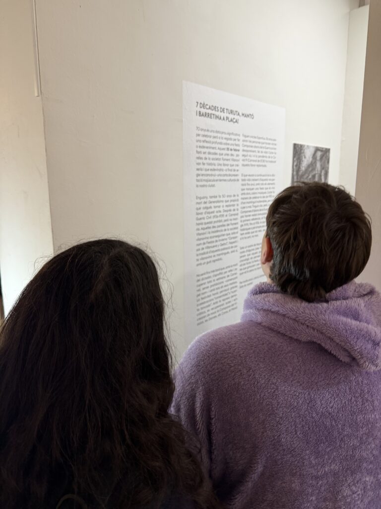 Durant la visita, van recórrer l’exposició atentament, van interactuar amb els materials exposats i van respondre diverses preguntes que els van ajudar a comprendre millor aquesta tradició tan emblemàtica a la ciutat. L’activitat va permetre que coneguessin els detalls dels plafons i les fotografies exposades, descobrint com s’ha viscut la festa de Les Comparses al llarg dels anys.