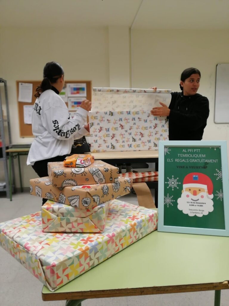 “Vine i emboliquem els teus regals de Nadal, gratis!” Aquesta és l’acció nadalenca que enguany han fet els alumnes PFI-PTT.