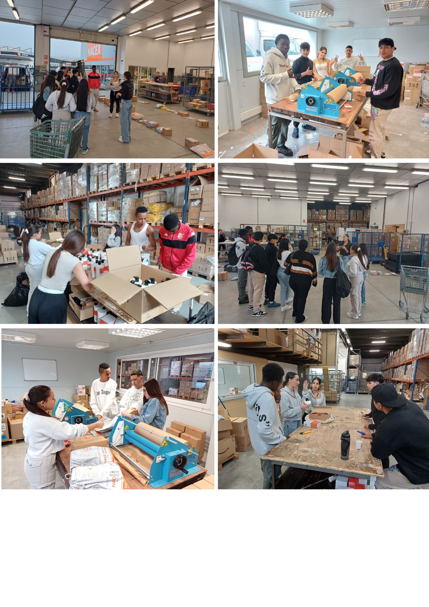 Al principi de les dues sessions els alumnes van poder visitar les instal·lacions i veure in situ, el dia a dia de les diferents seccions i treballadors de l’empresa. Després de la visita ja van posar en pràctica algunes de les tasques relacionades amb auxiliar de logística: encaixar, muntar o apilar caixes per a l’emmagatzematge o transport, realització d’activitats de packaging, verificació de l’estat i la quantitat dels productes, embalatge i etiquetatge de productes destinats a la comercialització, picking i preparació de comandes, ús de transpalet manual per al trasllat de mercaderies, control d’estoc i atenció als usuaris...