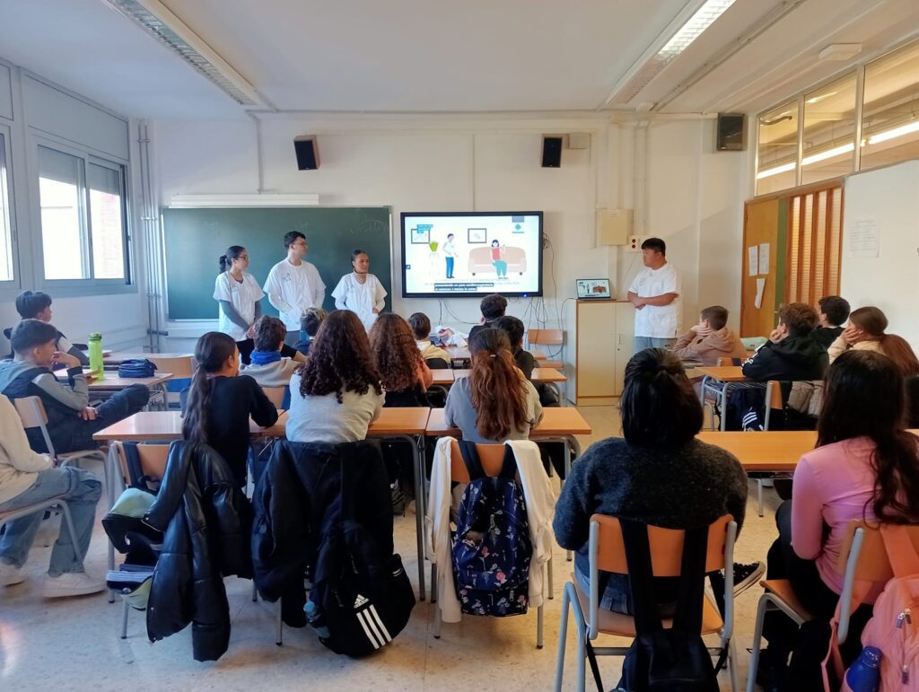 Avui, dimecres 22 de Gener, l’alumnat del PFI de l’Institut de Sales de Viladecans ha preparat un taller de Primers Auxilis que han implementat a tots els grups de primer de l’ESO.