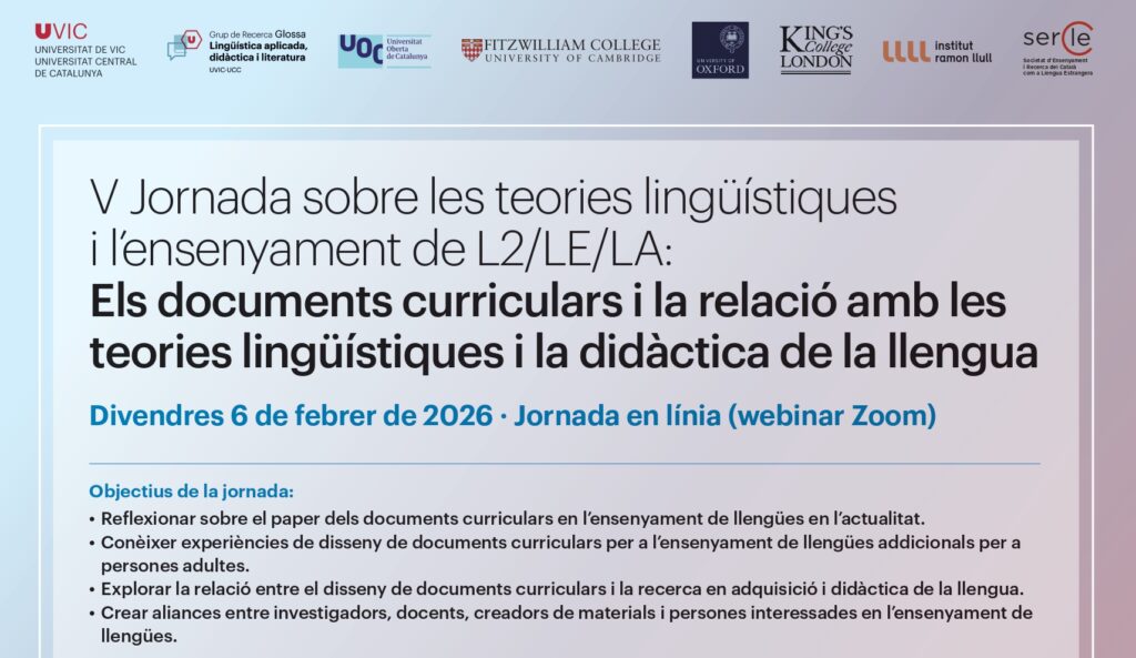 V Jornada sobre les teories lingüístiques i l’ensenyament de L2/LE/LA