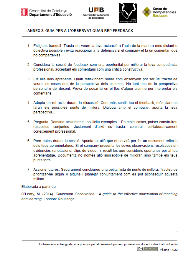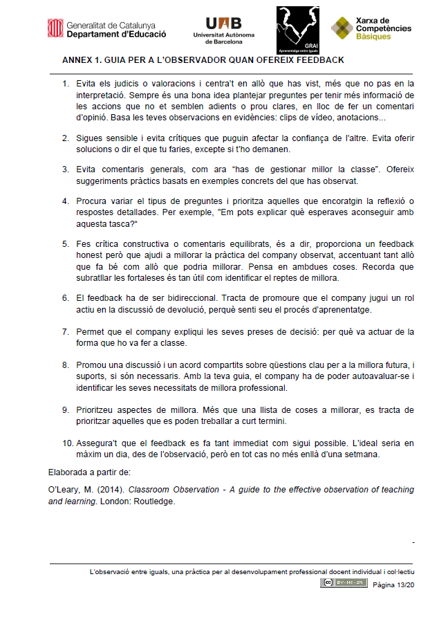 Annex 1. Guia per a l’observador quan ofereix feedback