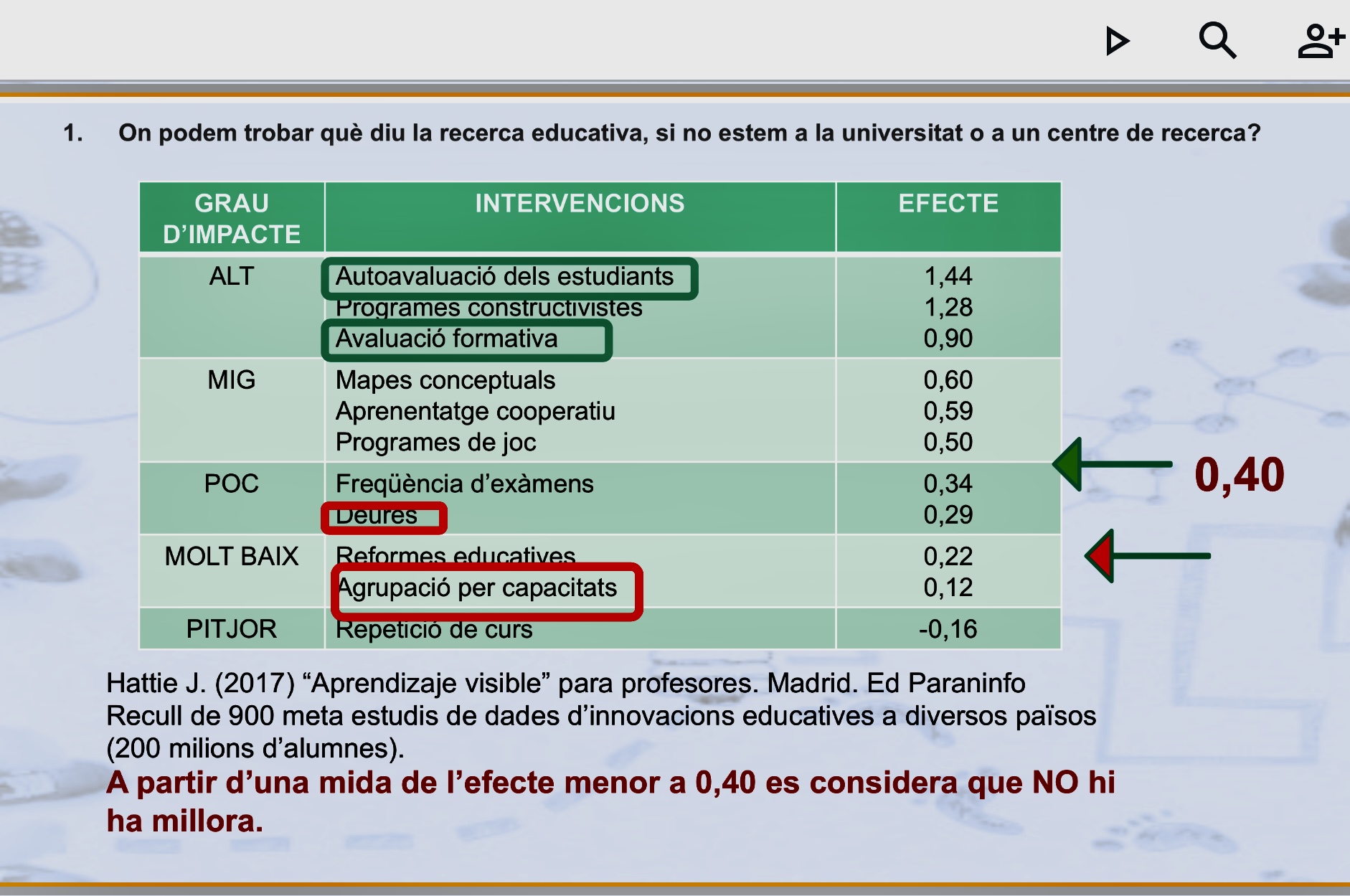 Ens ha mostrat on podem trobar què diu la recerca educativa, si no estem a la universitat o a un centre de recerca.