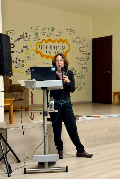 La primera part de la sessió ha anat a càrrec de la Montserrat Tortosa en qualitat d’excoordinadora de la xarxa RecercAULA. Ha parlat sobre què diu la recerca sobre xarxes educatives i com podem obtenir evidències pròpies.