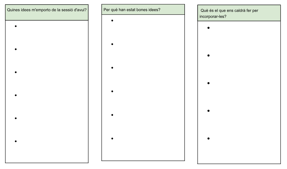 En acabar, s’ha facilitat als assistents una eina per a la recollida d’aprenentatges i reflexions fetes durant la sessió i se’ls ha convidat a INICIAR UN CICLE AVALUATIU DE XARXA mitjançant l’EADX digitalitzada.