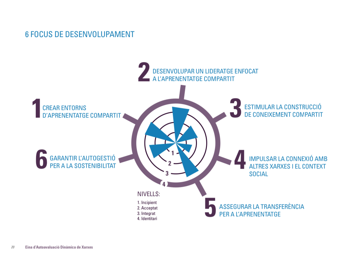 Amb un format de taller, s’ha ofert una activitat de caràcter concret i pràctic orientat a implementar un pla d’acompanyament a centres en xarxa i a l’avaluació de les xarxes a partir dels sis focus de desenvolupament, i on s’ha parlat d’instruments, d’eines i d’estratègies.