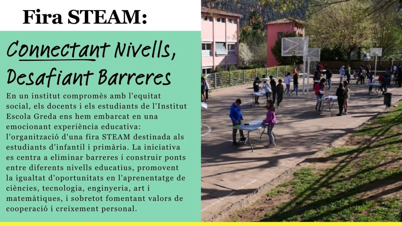 TeachMeet Dimarts (10.30 a 12.30 h) Experiències de centres STEAMcat que promouen l’equitat Frida Kalho / dones científiques Equitat amb robòtica a tota l’escola Programació Copa STEAM IES Pere Barnils Your browser does not support the video tag. SOS “Supporting Opportunity in School” Inclusió mitjançant fires STEAM Inclusió a través de l'”A” de STEAM STEAM al Daniel Mangrané Science fair en un centre complex i divers Pàgines: 1 2 3 4 5 6 7 8