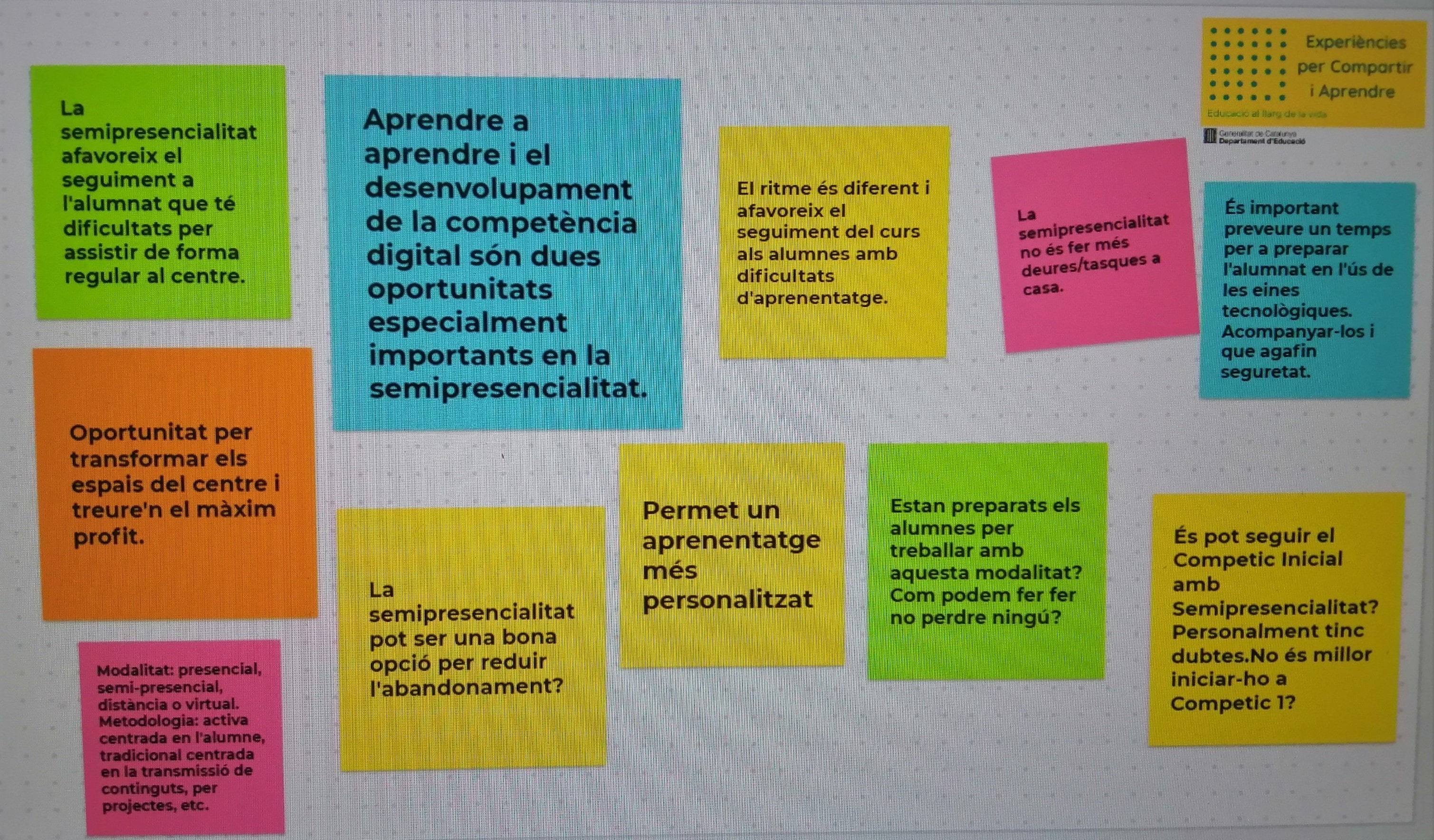 Durant la Jornada es va realitzar un Jamboard amb les idees claus de les diverses ponències i les aportacions dels participants. Aquestes són algunes de les informacions rebudes: