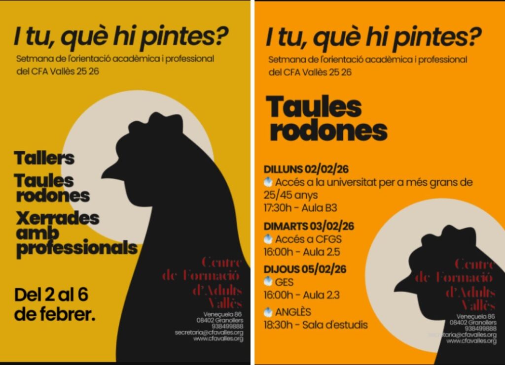 Del 02 al 06 de febrer, el CFA Vallès ofereix un seguit d’activitats relacionades amb l’orientació acadèmica i professional a càrrec de professionals de l’àmbit educatiu i d’exalumnes que pretenen que es converteixin en instruments d’empoderament i motivació per a l’alumnat.